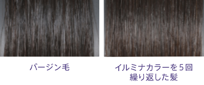 5回繰り返し染めてもバージンヘアと同等のツヤを維持します。